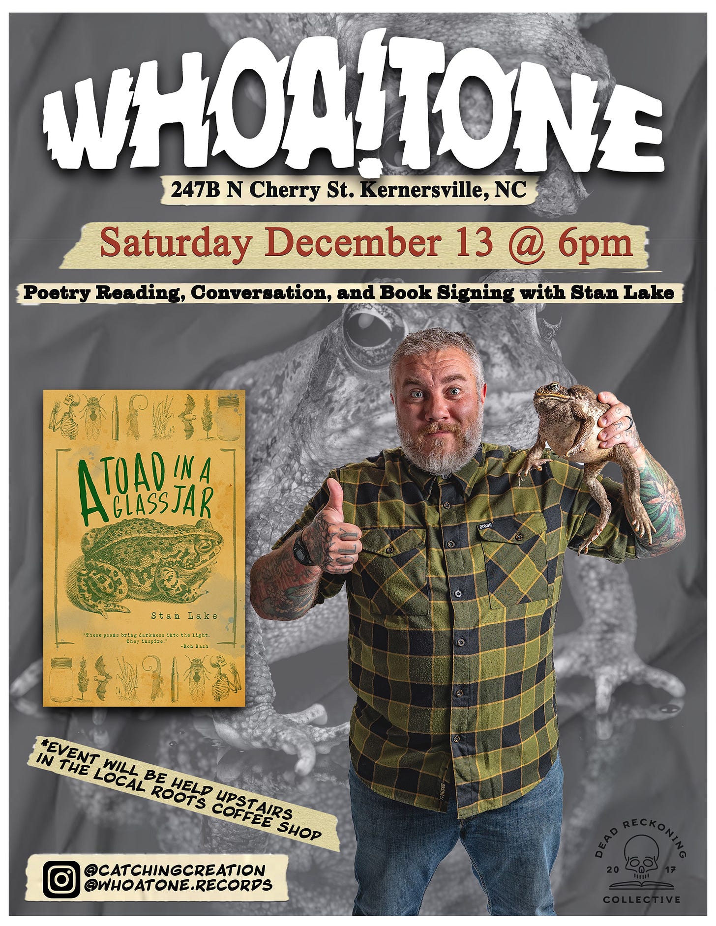 If you’re anywhere near Kernersville, NC, on Saturday, come say hello. I’ll be doing a book signing and poetry reading at Whoa!Tone Records at 6 pm.